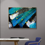Abstrakte farbenfrohe gerahmte Wandkunst, großer blauer Leinwanddruck mit schwebendem Rahmen, modernes konzeptuelles Ölgemälde auf Leinwand, schlichte abstrakte Wandkunst