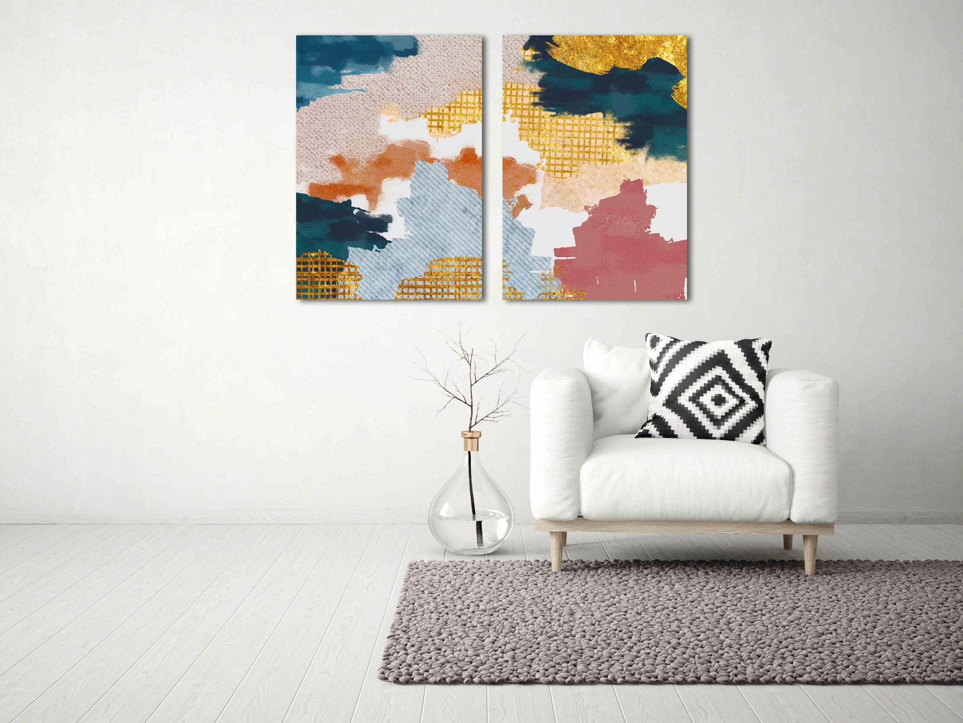 •Die Größe eines Gemäldesets, das aus mehreren Tafeln besteht, wird berechnet, indem die Tafeln zusammengezählt werden. Es wird empfohlen, solche Sets mit einem Abstand von 1–2 Zoll zwischen den Tafeln an der Wand anzubringen. Je größer die Bildelemente, desto größer ist der zulässige Abstand zwischen ihnen.
