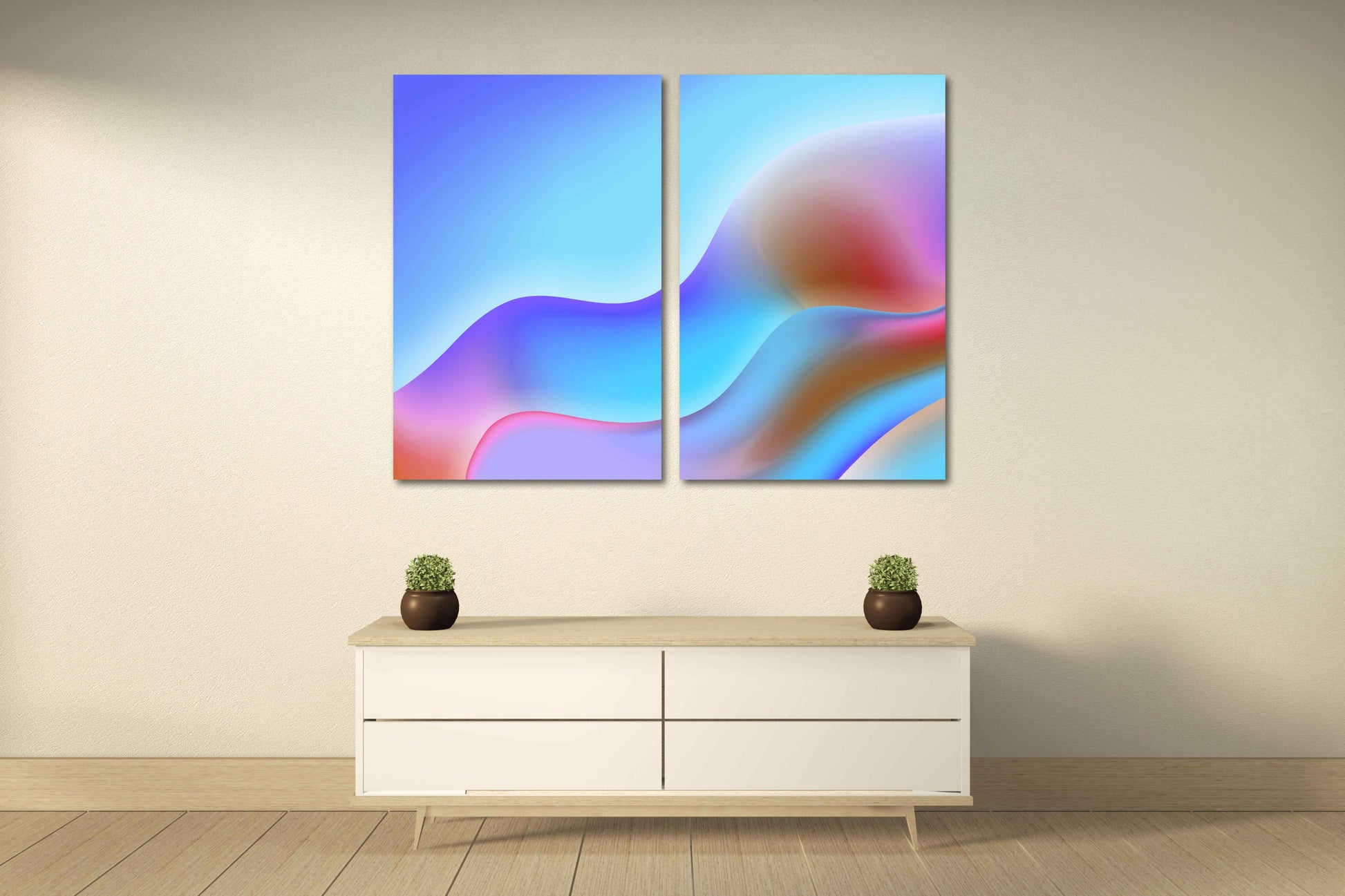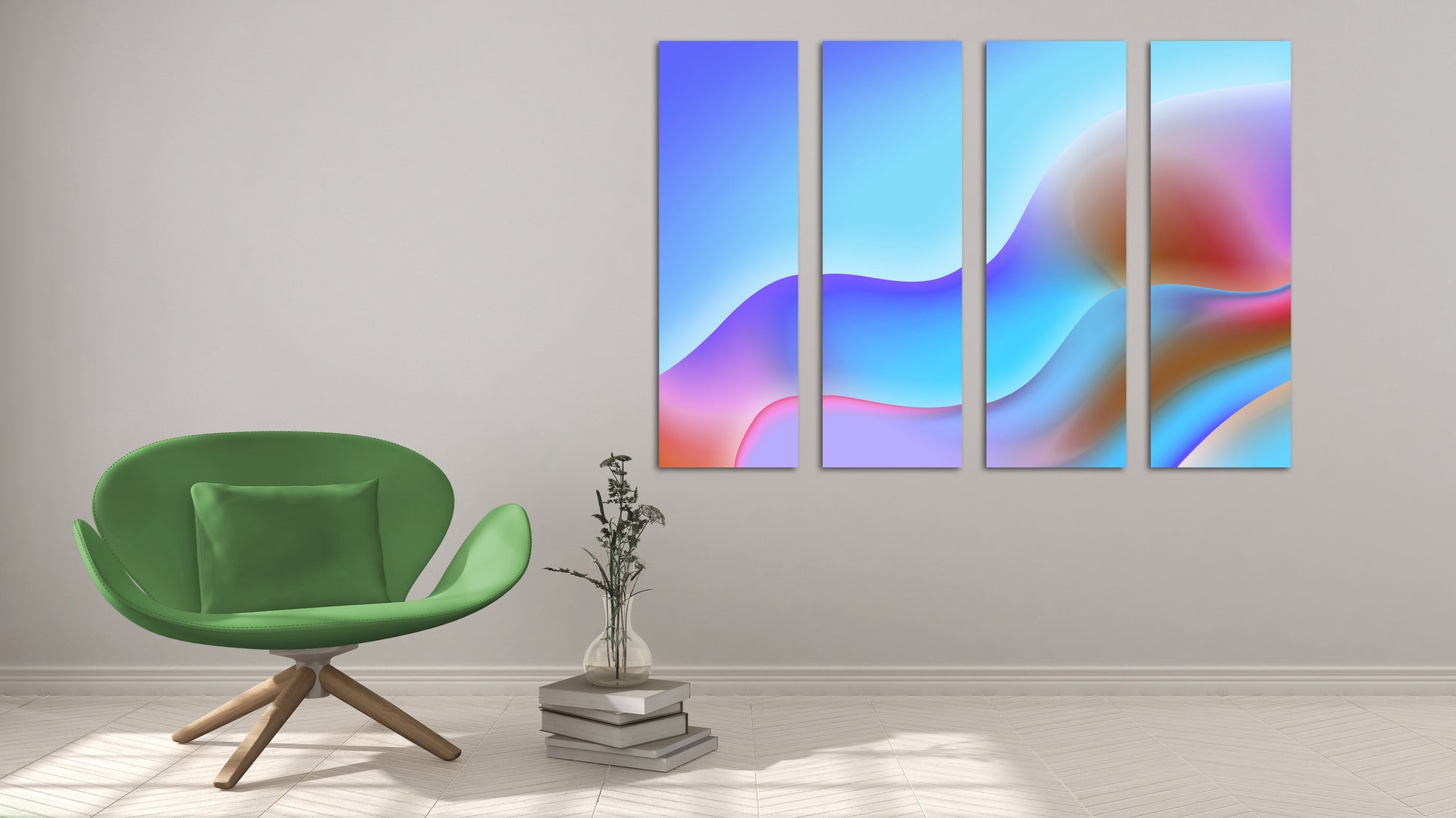 •Die Größe eines Gemäldesets, das aus mehreren Tafeln besteht, wird berechnet, indem die Tafeln zusammengezählt werden. Es wird empfohlen, solche Sets mit einem Abstand von 1–2 Zoll zwischen den Tafeln an der Wand anzubringen. Je größer die Bildelemente, desto größer ist der zulässige Abstand zwischen ihnen.