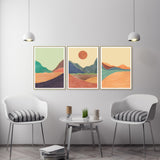 Mid Century Modern Abstrakte Bergwandkunst Leinwand, druckbares Wandkunst 3er Set, minimalistische Wandkunst, geometrisches Leinwandgemälde