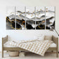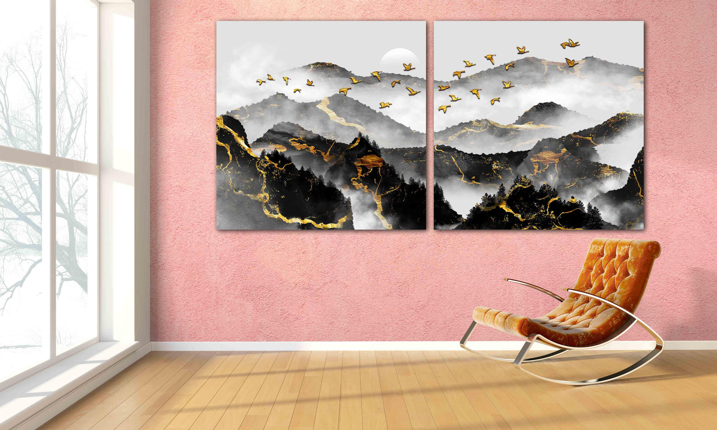 •Die Größe eines Gemäldesets, das aus mehreren Tafeln besteht, wird berechnet, indem die Tafeln addiert werden. Es wird empfohlen, solche Sets mit einem Abstand von 2,5–5 cm zwischen den Paneelen an der Wand zu platzieren. Je größer die Bildelemente, desto größer ist der zulässige Abstand zwischen ihnen.