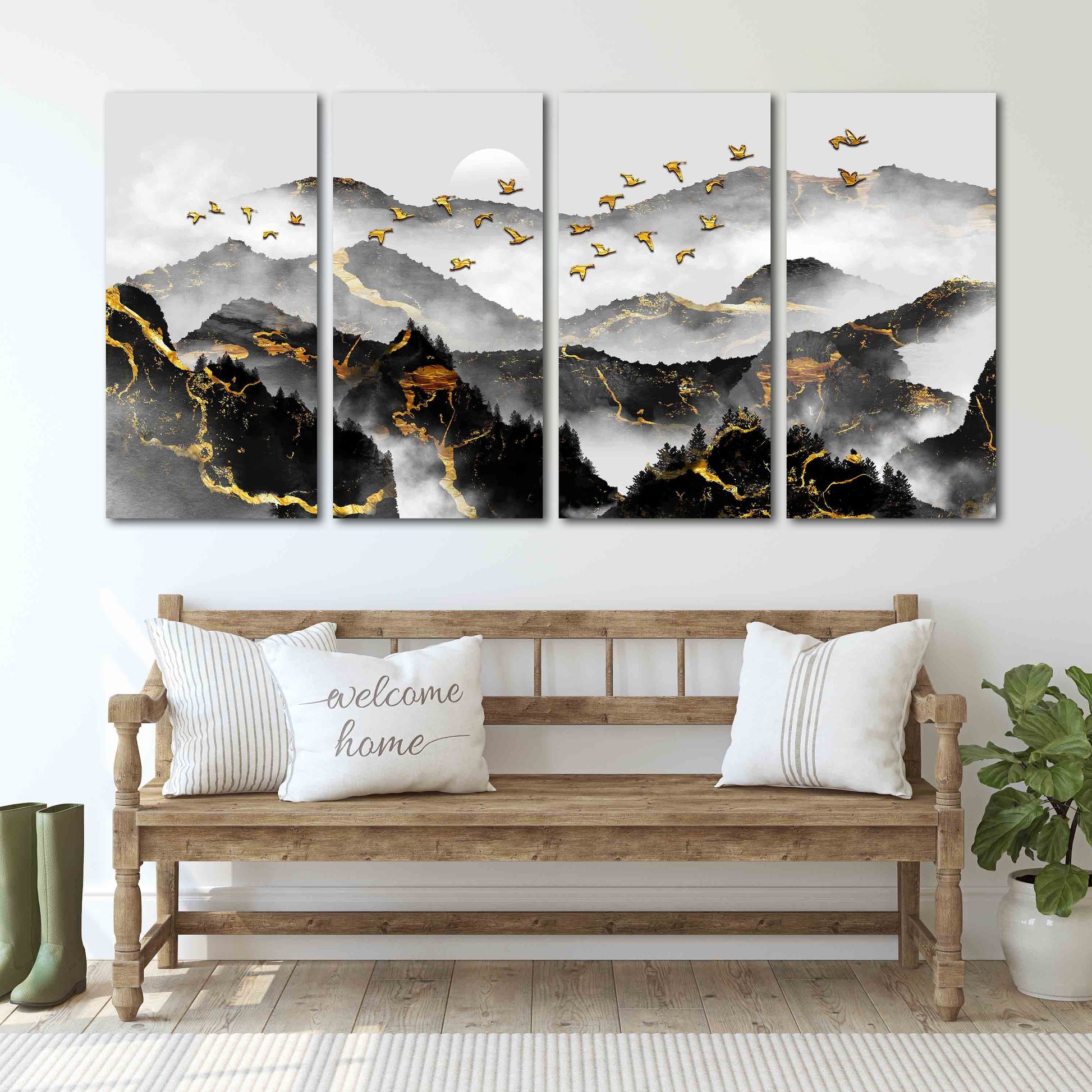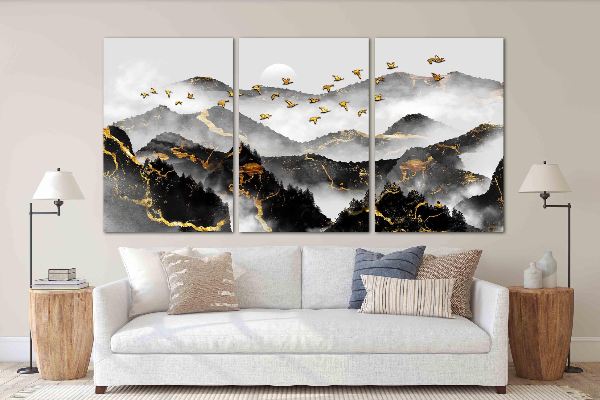 Rauchige Berge Wandkunst 3-teiliges Leinwandbild Felsen und Berge Home Wanddekoration Outdoor Berge Wandkunst Leinwandgemälde