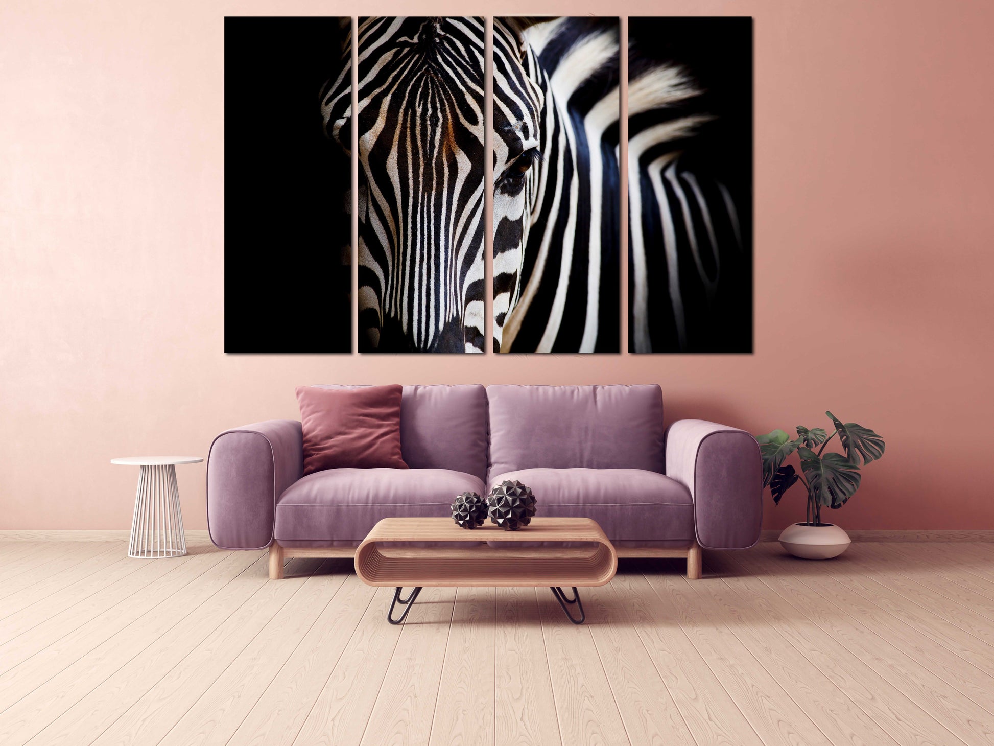 Zebra-Wandkunst, Schwarz-Weiß-Kunst, Wildtier-Wandkunst, Leinwandgemälde, zeitgenössische Kunst, Wohnzimmerkunst, extra große Wandkunst